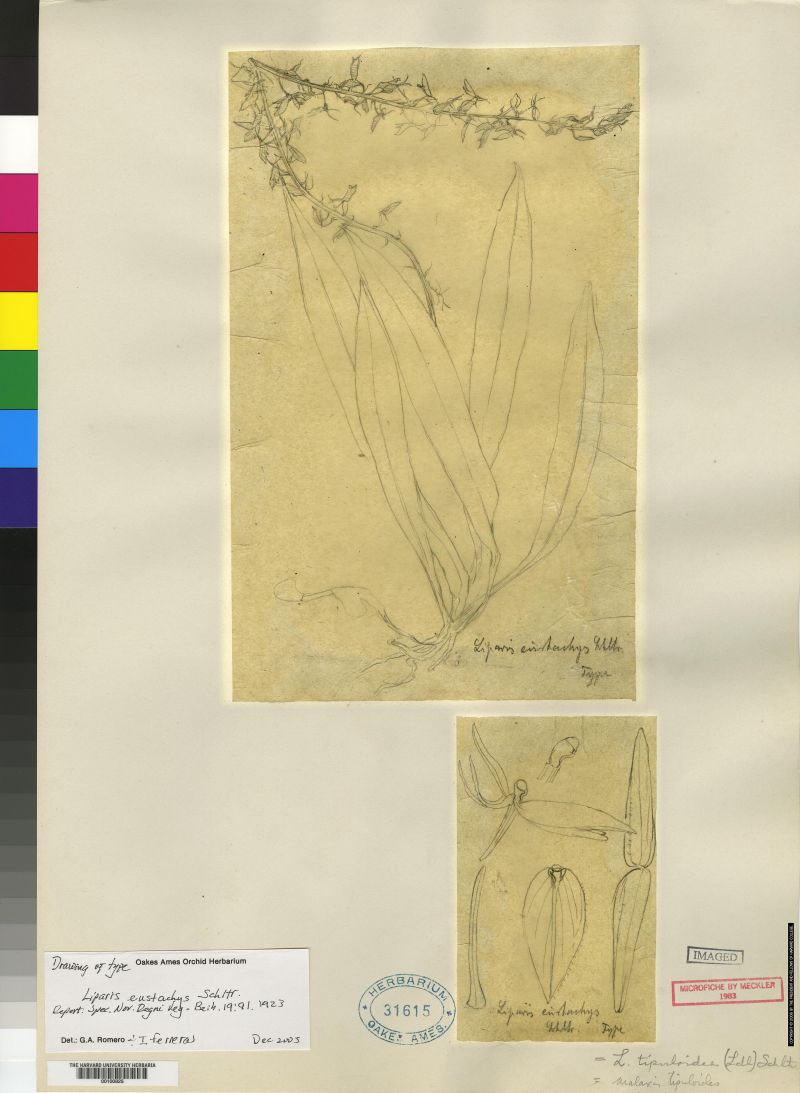 References W3 Tropicos, Kew Monocot list , IPNI ; Repert. Spec. Nov. Regni Veg. Beih. 19: 91. Schlechter 1923 as Liparis eustachys; *Native Ecuadorian Orchids 1: 149 Dodson 15 Nov. 1993