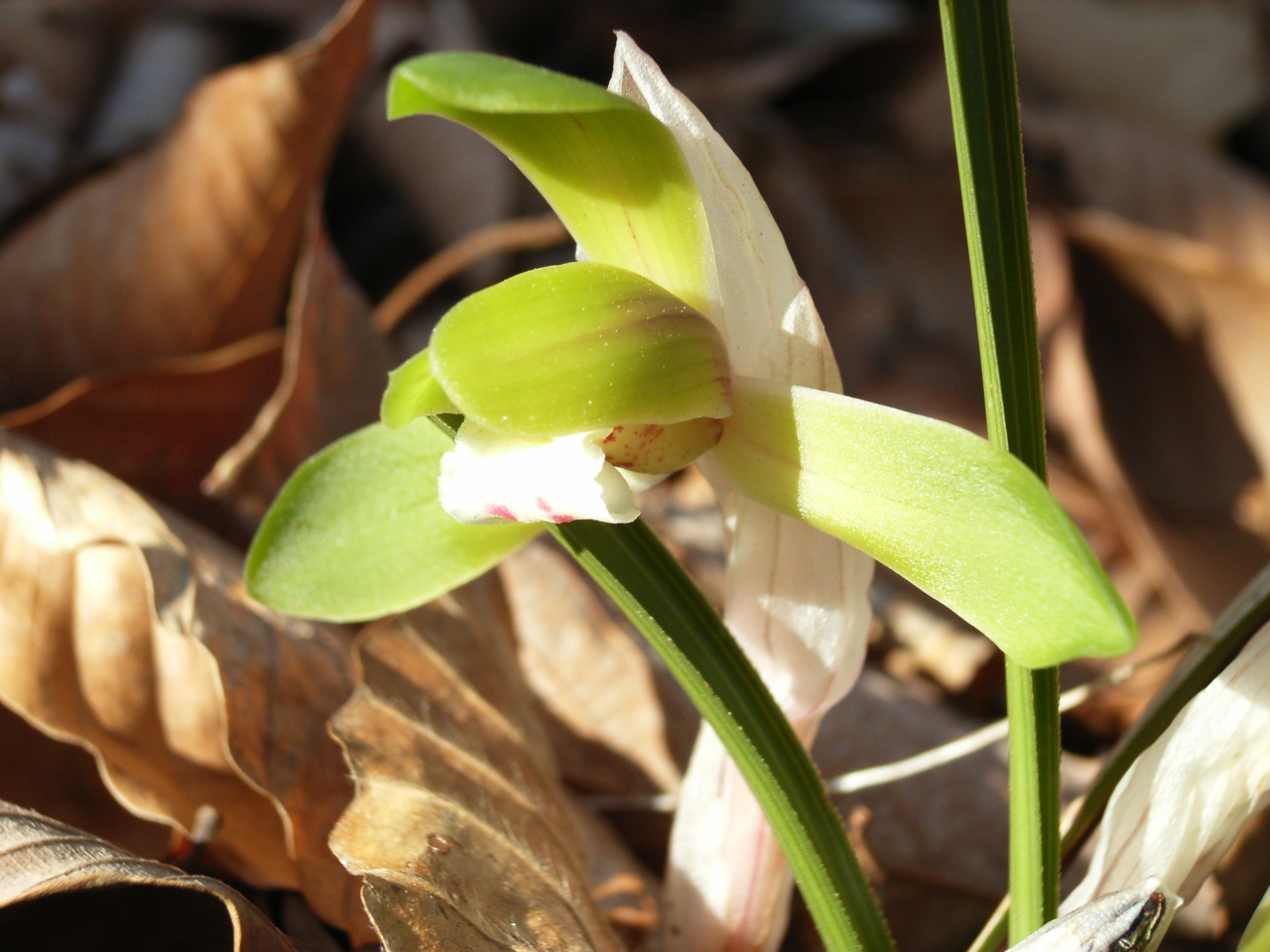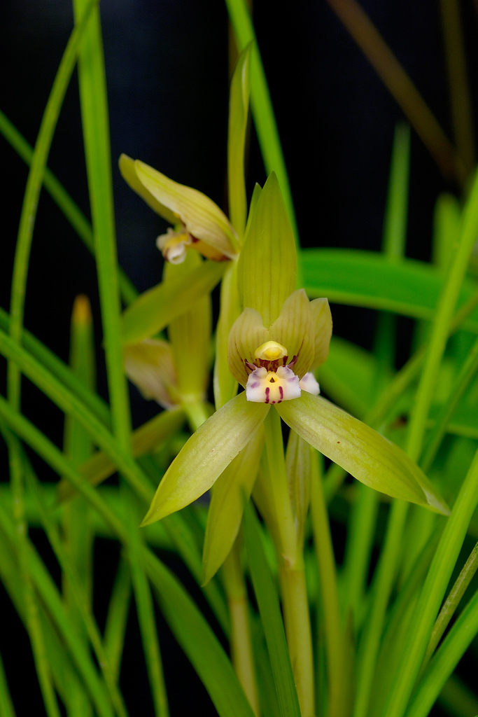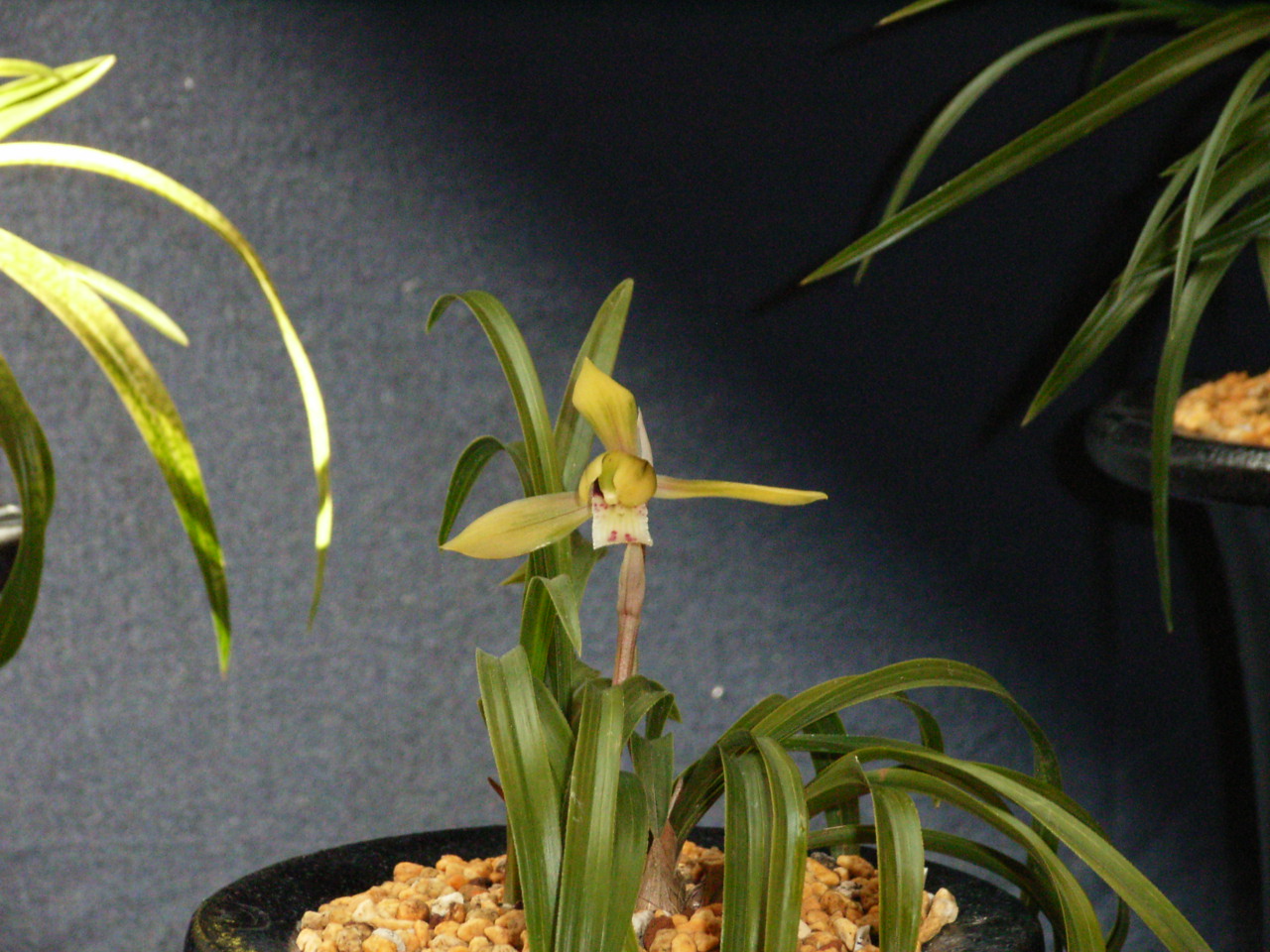 A native of northwestern India, Bhutan, China, Taiwan, Ryukyu Islands, Japan and Korea as a smaller, cool growing terrestrial with smaller, ovoid pseudobulbs carrying linear-elliptic, acute, arched leaves with fine toothed margins that blooms in the winter and spring on a basal, erect, basally sheathed, 4" [10 cm] long, solitary to few [1 to 3] flowered, shorter than the leaves inflorescence carrying fragrant jasmine, lily of the valley to lemon scented flowers held low amid the leaves and has been a perrenial favorite of Japanese and Chinese culture for centuries.