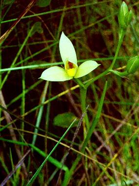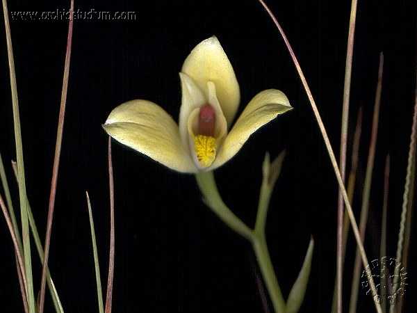 This orchid emerges anew each year to produce a new stem and leaves and at maturity sets flowers and then seed only to die back and disappear until the next years new growth.
