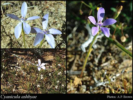 Cyanicula ashbyae Hopper & A.P.Br. 2000 © Photography by A. P. Brown . Image used with the permission of the Western Australian Herbarium, Department of Environment and Conservation (http://florabase.dec.wa.gov.au/help/copyright). Accessed on Thursday, 30 August 2012 and The Flora Base Website