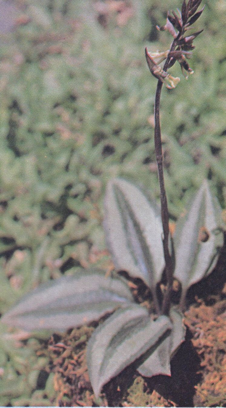 Found in Mexico, Guatemala, Belize, Honduras, El Salvador, Nicaragua and Costa Rica at elevations around 1800 meters as a miniature sized, cool growing terrestrial with basal, in a rosette, dark green silvery striped, acute, gradually narrowing below into a short petiolate base leaves that blooms in the late winter and early spring on an erect, terminal, 6.8" [17 cm] long, apically villose, laxly to 10 flowered inflorescence enveloped by 4 to 5, small towards the apex, clear purple, acuminate sheaths.