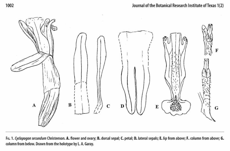 Cyclopogon secundum Christenson 2007 Drawing by © Hoehne and The Swiss Orchid Foundation at the Jany Renz Herbaria Website