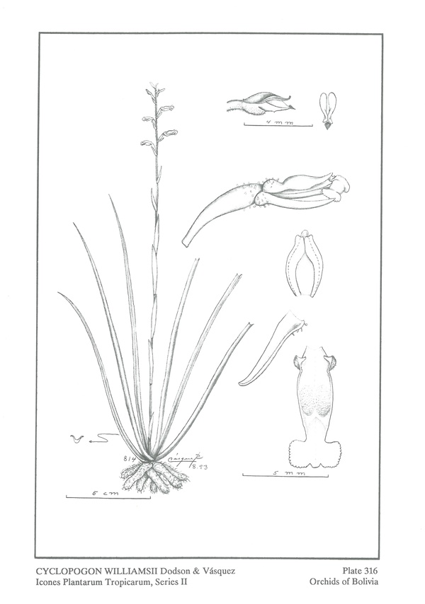 Cyclopogon williamsii Dodson & R.Vásquez 1989 Drawing by © Dodson and The Swiss Orchid Foundation at the Jany Renz Herbaria Website