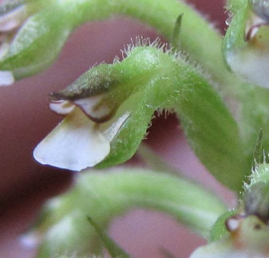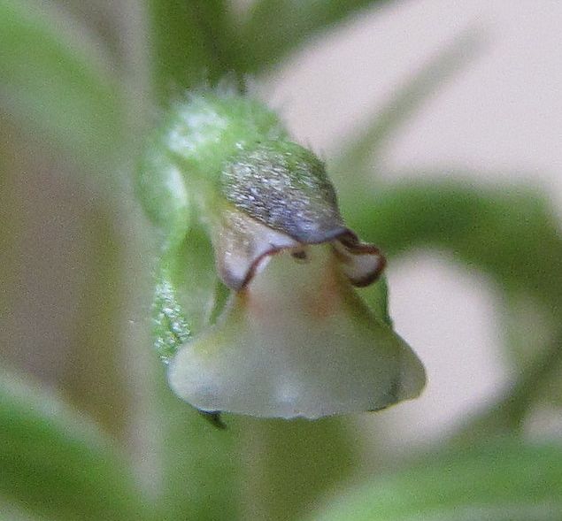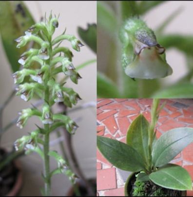 Found in southeastern & southern Brazil as a small sized, cool growing terrestrial orchid with basal, oblong to suborbicular, acuminate, narrowing below into the elongate, petiolate base leaves that blooms in the spring on a terminal, erect, 12" [30 cm] long, densely many flowered inflorescence with inflated, lanceolate, acute bracts and longer than the ovary floral bracts..