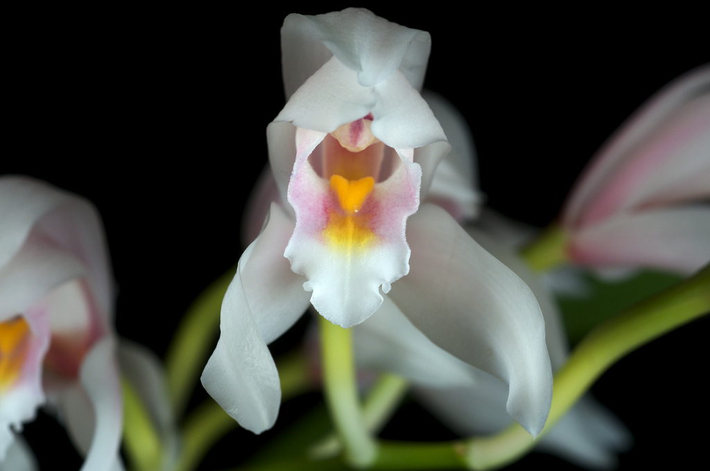 Found in south Vietnam at elevations around 1400 meters as a cool growing epiphyte with pseudobulbs that have not been seen and carrying linear, unequally obtusely or roundly bilobed apically leaves that blooms on a suberect to arching, 3 flowered inflorescence with scarious, ovate floral bracts.