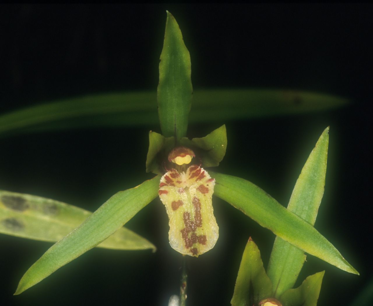 Found in north Vietnam and southern China in deep shade in open forests at elevations of 700 to 1800 meters as a medium to large sized, cold to cool growing terrestrial species with narrowly ovoid, often conspicuous pseduobulbs enveloped by scarious cataphylls and broad sheathing bases carrying 3 to 5, linear to linear-elliptic, acuminte, arching, dark green, shining leaves that often have serrulate margins towards the apex that blooms in the winter on a basal, erect, 20" [50 cm] long, many [10+] flowered, racemose inflorescence with the strongly lemon peel scented flowers held above the leaves.