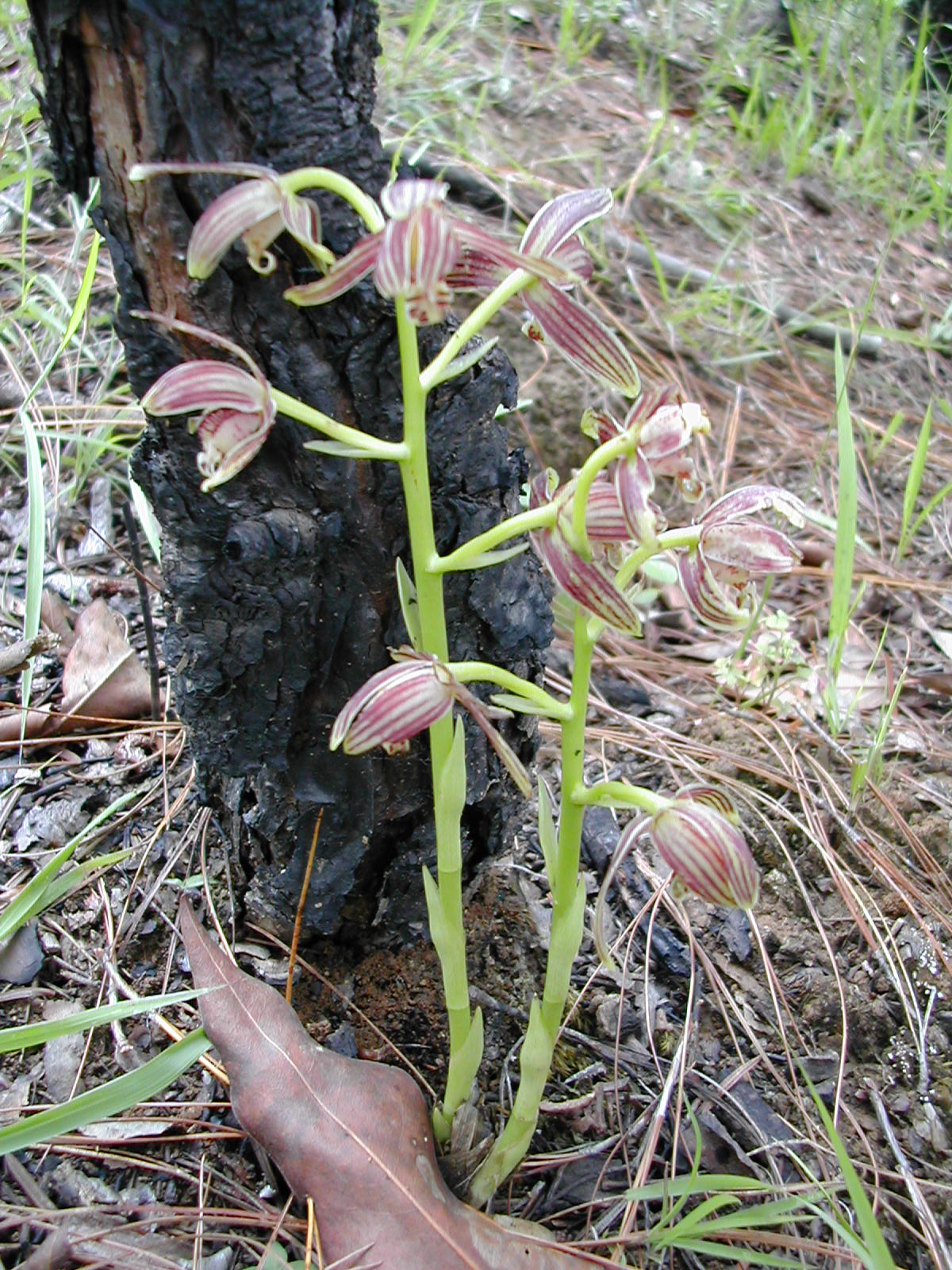 Found in southeastern Yunnan province of China in dense forests in humus rich areas at elevations around 1500 meters as a small to medium sized, cool growing terrestrial with a subterranean, yellowish-white, fleshy, often branched several noded, slightly papillate rhizome with several hairy roots giving rise in the late spring and early summer to an erect, arising from the apex of the rhizome, greenish tinged purplish red, 16 to 18" [40 to 45 cm] long, 3 to 10 flowered inflorescence with 4 to 5, pale yellow-green sheaths and pale yellow-green, narrowly triangular floral bracts