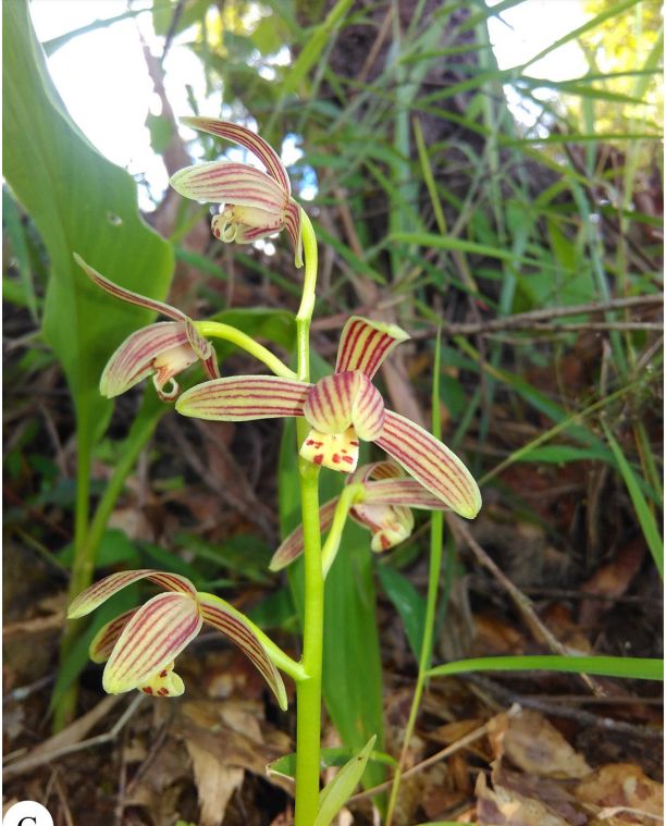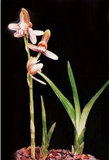 Found in southwestern Yunnan, southwestern Guizhou and Hainan provinces of China in rocky places in forests as a small sized terrestrial with a subfleshy subterranean rhizome giving rise to 2 to 3, lorate, suberect leaves that blooms in the spring on a lateral, erect, racemose, laxly 3 to 4 flowered inflorescence and carrying fragrant flowers