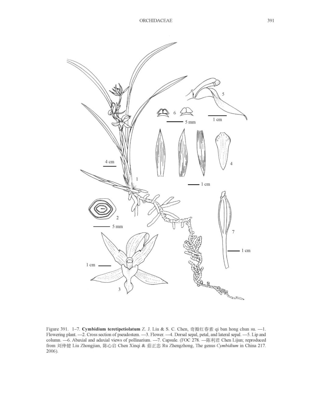 Cymbidium teretipetiolatum Z.J.Liu & S.C.Chen 2002 SECTION Jensoa [Raf.] Schlechter 1924 Drawing By © Chen Lijun and the The Flora Of China Website