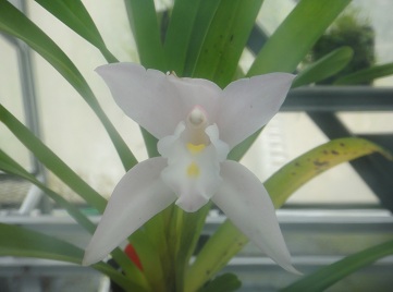 Found in northern Thailand without locality as a medium sized, cool growing terrestrial with cane-like, clustered, erect-patent, bilaterally flattened, leafy throughout stems enveloped by persistent leaf sheaths and carrying many, [11 to 19 fresh ones], distichoud, conduplicate, suberect patent, coriaceous, ligulate, unequally bilobed with a short mucro in the sinus, costate abaxially, sheath clasping leaves tthat blooms in the spring on an erect, axillary, emergiong successively over several years on a single stem, 6 to 8.4" [21 cm] long, 4 to 6 basal sheaths entirely enveloping the inflorescence, rachis to 1.76" [4.4 cm] long, 1 to 2 flowered inflorescence with triangular, acute-acuminate, membraneous, brownish floral bracts and carrying slightly scented flowers