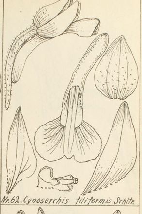References W3 Tropicos, Kew Monocot list , IPNI ; Flora of Madagascar Perrier 1939 as Cynosorchis filiformis drawing fide; Flora of Madagascar Perrier 1939 as Cynosorchis hirtula; Orchids of Madagascar Hermans 2007; Field Guide to the Orchids of Madagascar Cribb & Herman 2009 photo fide; A la Recherche des Orchidees de Madagascar Hervouet 2018 photo fide;
