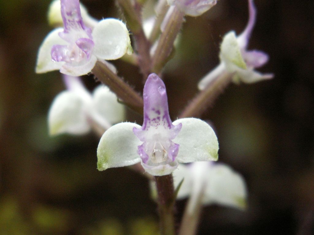 Found in Reunion and Madagascar at elevations of 750 to 2000 meters as a small sized, warm to cool growing terrestrial with tuberous roots giving rise to an erect, glandular hairy stem carrying 1 to 3, basal, radical, wavy, slender, ovate to lanceolate, firm, sharp, green on both sides, yellow reticulate above leaves that blooms in the later winter and spring on an erect, 4 to 12" [10 to 30 cm] long, several flowered inflorescence.