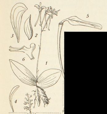 Cynorkis spatulata H.Perrier ex Hermans 2007 SECTION Cynorkis TYPE Drawing by © Perrier and The Swiss Orchid Foundation at the Jany Renz Herbaria Website