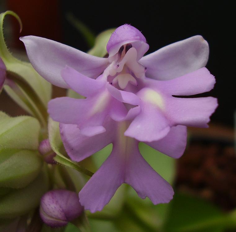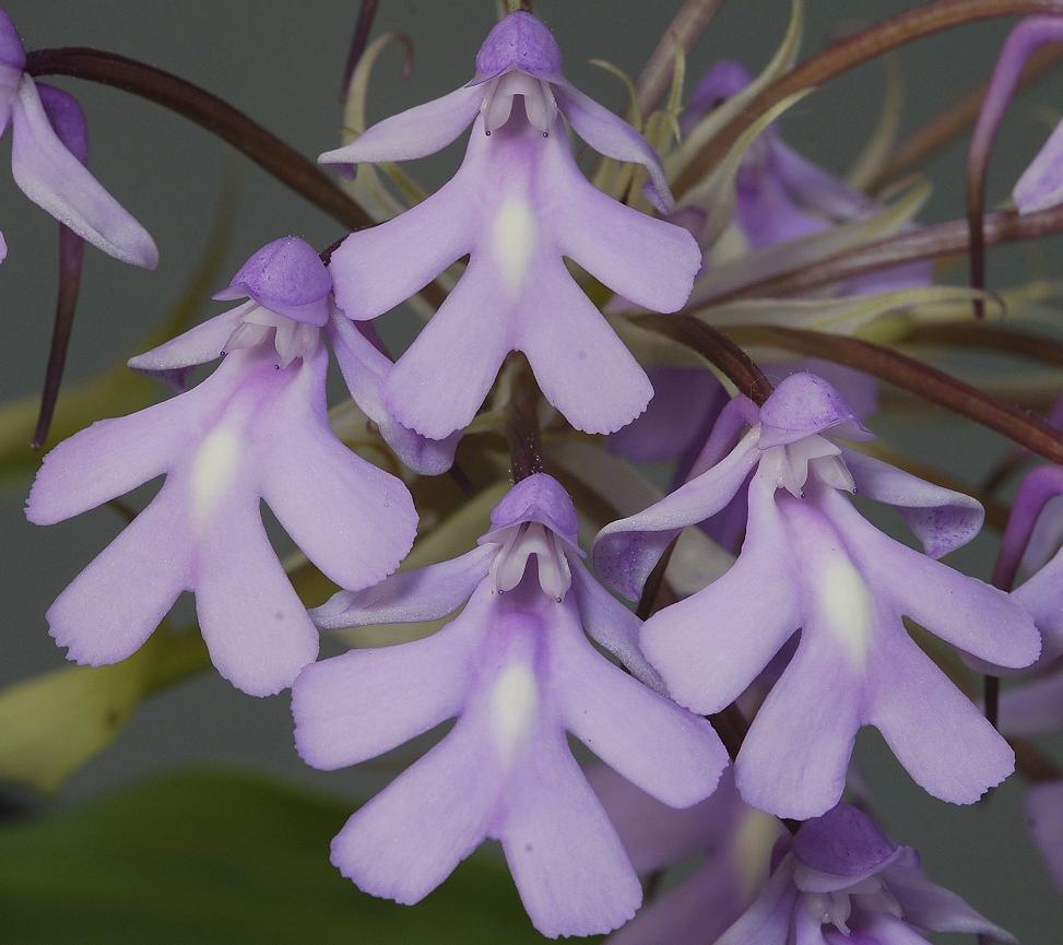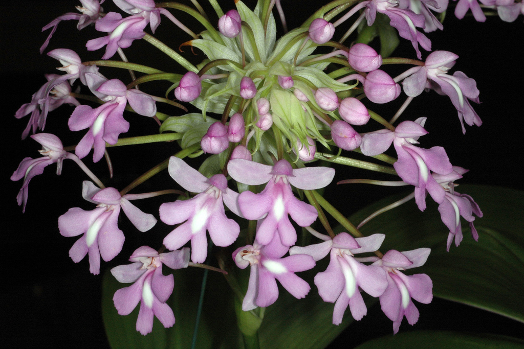 Found in Madagascar on trees at elevations of 600 to 1100 meters as a miniature to small sized, warm to cool growing epiphyte with numerous glabrous roots giving rise to a single, plicate, elliptic, acute, gradually narrowing into the short conduplicate base leaf that that blooms in the summer and fall on an erect, dense, 7 to 15 flowered inflorescence arising terminally on a mature leaf.