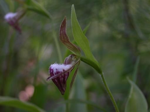 This medium sized, cold growing terrestrial species is found in eastern and central Canada and south to Minnesota and Connecticut where it is found in sphagnum bogs on wooded limestone slopes with elliptic-lanceolate, plicate leaves which spiral around the stem that blooms in the late spring and early summer on a short, slender stalked, pubescent, to 14" [35 cm] long, terminal raceme arising from a broad leaflike bract with a solitary, fragrant, nodding, short-lived flower arising from the larger semi-mature leaves of which there are 3 to 5.