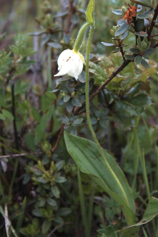 Found in Western Sichuan at elevations of 4000 to 4200 meters as a miniature to small sized, very cold growing terrestrial with a creeping rhizome giving rise to a short, subterranean, slender stem enveloped at the base by 2 to 3 tubular sheaths and carrying 2 subopposite, elliptic to ovate, sparsely pubescent on the dorsal veins leaves that blooms on an erect, single flowered inflorescence