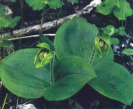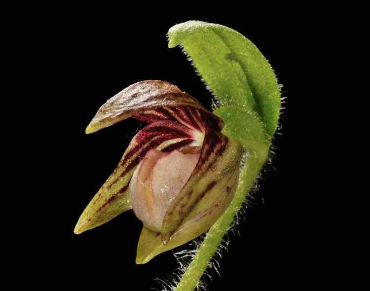 Found in the western Himalayas, Nepal, Bhutan, Sikkim, eastern Himalayas and northwestern Yunnan and southern Xizang provinces of China on steep slopes in humus rich areas in forests or in thickets at elevations of 2400 to 4000 meters as a mini-miniature to miniature sized, cold growing terrestrial with a creeping rhizome giving rise to an erect, densely white-villous stem with 2, tubular, basal sheaths and carrying 2, subopposite, spreading, ovate, laxly pubescent all over, 3 veined obscure above, prominent below, sessile leaves that blooms in the late spring and early summer on an erect, .8 to 1.6" [2 to 4 cm] long, single flowered, villose inflorescence with erect, puberulous, ovate, much longer than the ovary floral bract.