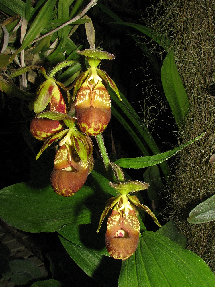 Found in southeastern Tibet in forests at elevations around 1400 meters as a large to giant sized, cool growing terrestrial with an erect, pubescent stem with several basal pubescent sheaths and carrying 9 to 10, elliptic-oblong to elliptic-lanceolate, abaxially pubescent, acuminate, more or less ciliate margins, contracted below into the petiolate base leaves that blooms in the early summer on a terminal, racemose, red pubescent, to 12" [30 cm] long, 7 flowered inflorescence with more or less reflexed, linear-lanceolate, reddish pubescent, shorter than the ovary floral bracts.