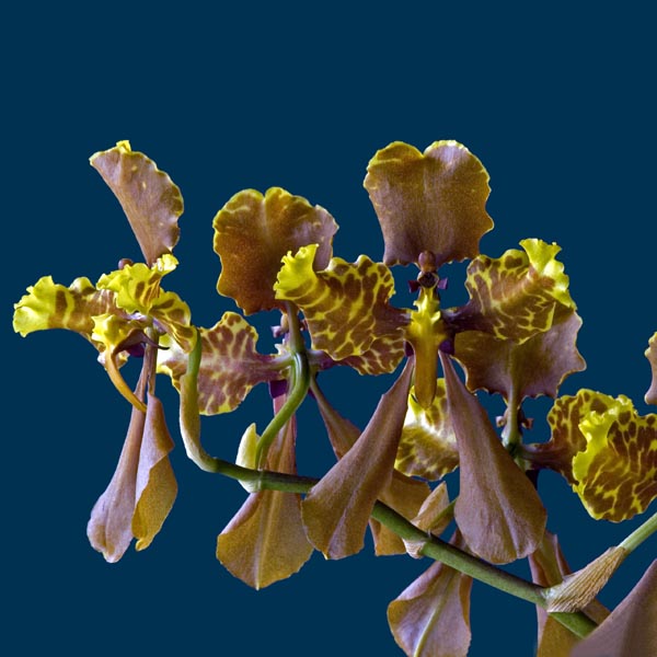 Found in east central Ecuador at elevations around 2200 to 3000 meters as a large sized, caespitose, cold growing epiphyte with narrowly ovoid pseudobulbs enveloped basally by several, distichous, leaf bearing sheaths and carrying 2 to 3, apical, erect, linear-lanceolate, acute, conduplicate below into the petiolate base leaves that blooms in the fall on an axillary, erect, twining, stout, 10 to 13.4' [3 to 4 meter] long, paniculate, to 14 branched, to 5 flowers each, apically racemose, many flowered inflorescence with boat-shaped bracts.