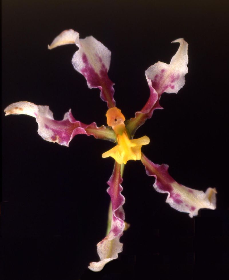 Similar to C ioplocon but this one differs in the bicolored sepals and petals and the ventrally straight column.
