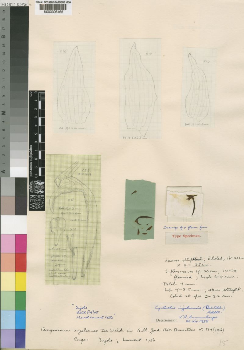 Synonyms Angraecum ealaense De Wild. 1916; *Angraecum injoloense De Wild. 1916; Cyrtorchis ealaensis (De Wild.) Schltr. 1918; Homocolleticon injoloensis (De Wild.) Szlach. & Olszewski 2001