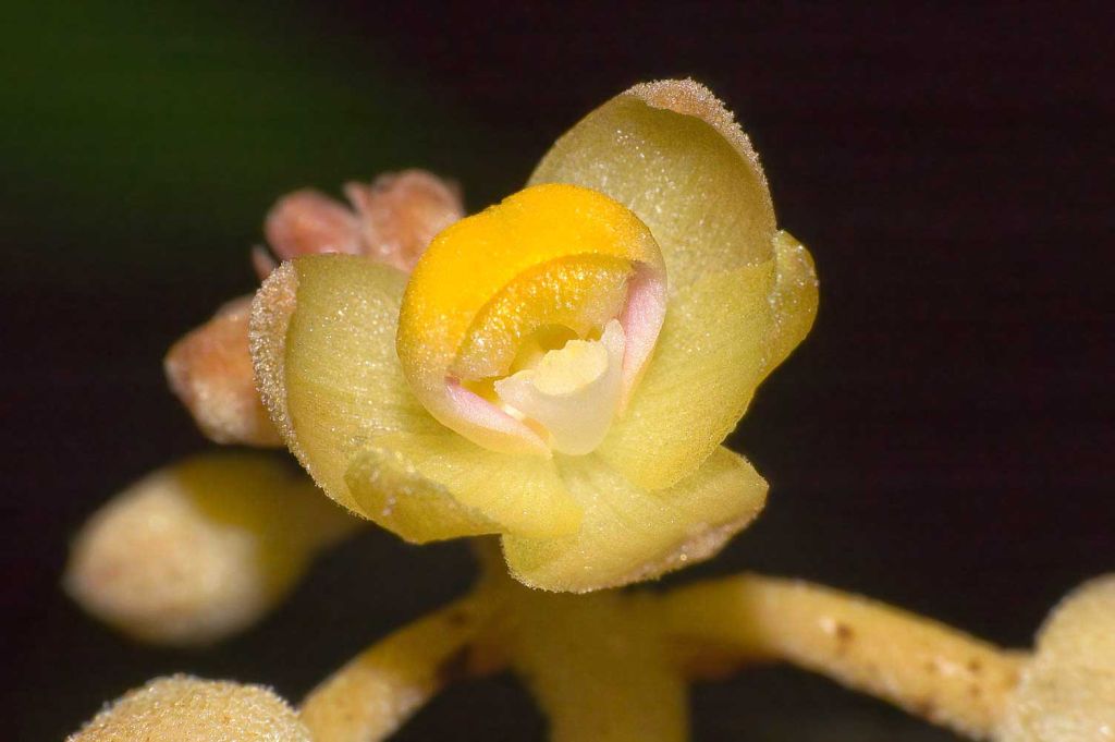 Occurring in Yunnan province of Chian, Thailand, penninsular Malaysia, Java, Sumatra, Borneo and Taiwan in bamboo forests at elevations of 700 to 2700 meters in lower montane, primary, evergreen, broad-leafed forests as a mini-miniature to small sized, warm to cold growing leafless mycoheterotrophic herb with a stout, erect rhizome with several spreading cylindrical fleshy roots and carrying several, erect, branched, often curved stems with numerous scale leaves and blooms on a terminal, elongating inflorescence with successive, nonresupinate flowers.