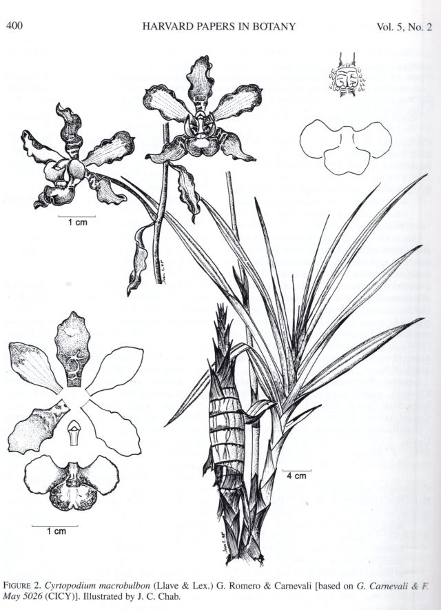 Synonyms Cyrtopodium macrobulbum f. salvadorense (Hamer & Garay) G.A.Romero & Carnevali 1999; Cyrtopodium punctatum var. salvadorense Hamer & Garay 1981; *Epidendrum macrobulbon Lex. 1825