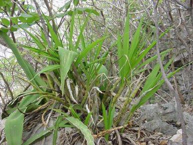 Found in Mexico, Guatemala, Belize, El Salvador, Honduras, Nicaragua, Costa Rica and Panama at elevations of sea level to 900 meters as a large sized, hot to warm growing terrestrial or lithophyte with erect, rigid, long-fusiform, somewhat laterally compressed, enveloped in youth by foliaceous sheaths and carrying attenuate, acute, conspicuously 3 nerved leaves that blooms in the spring on a lateral, to 44" [1.1 meter] long, paniculate, peduncle purple, enveloped by a few large, somewhat undulate, greenish yellow sheaths, many flowered inflorescence.
