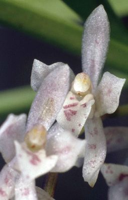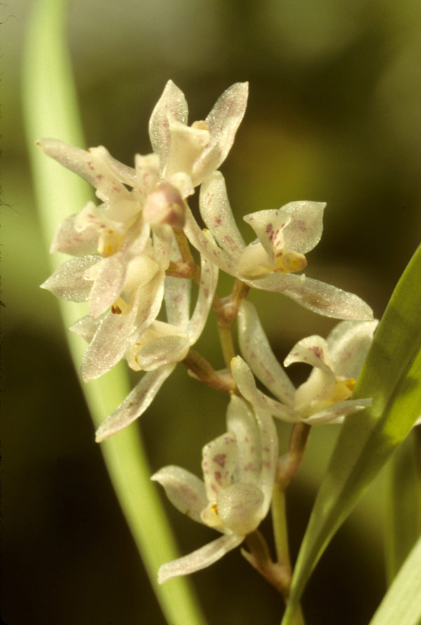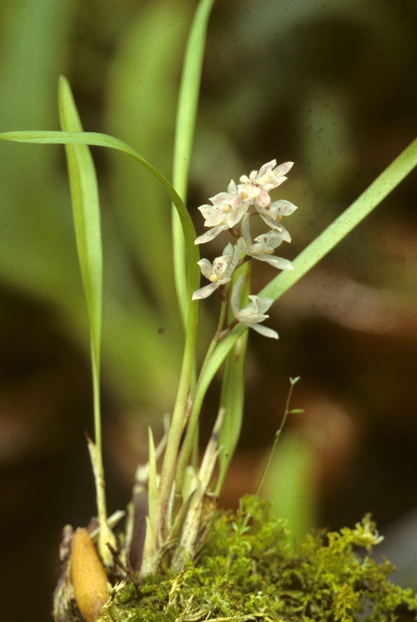 Found in Peru as a small sized, cold? growing epiphyte that blooms in the fall on an axillary, erect, few to several flowered inflorscence