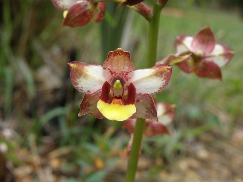 Found in Prarna and Santa Catarina states of Brazil as a terrestrial with very small pseudobulbs carrying lanceolate leaves and blooms in the spring on an erect racemose several flowered inflorescence.