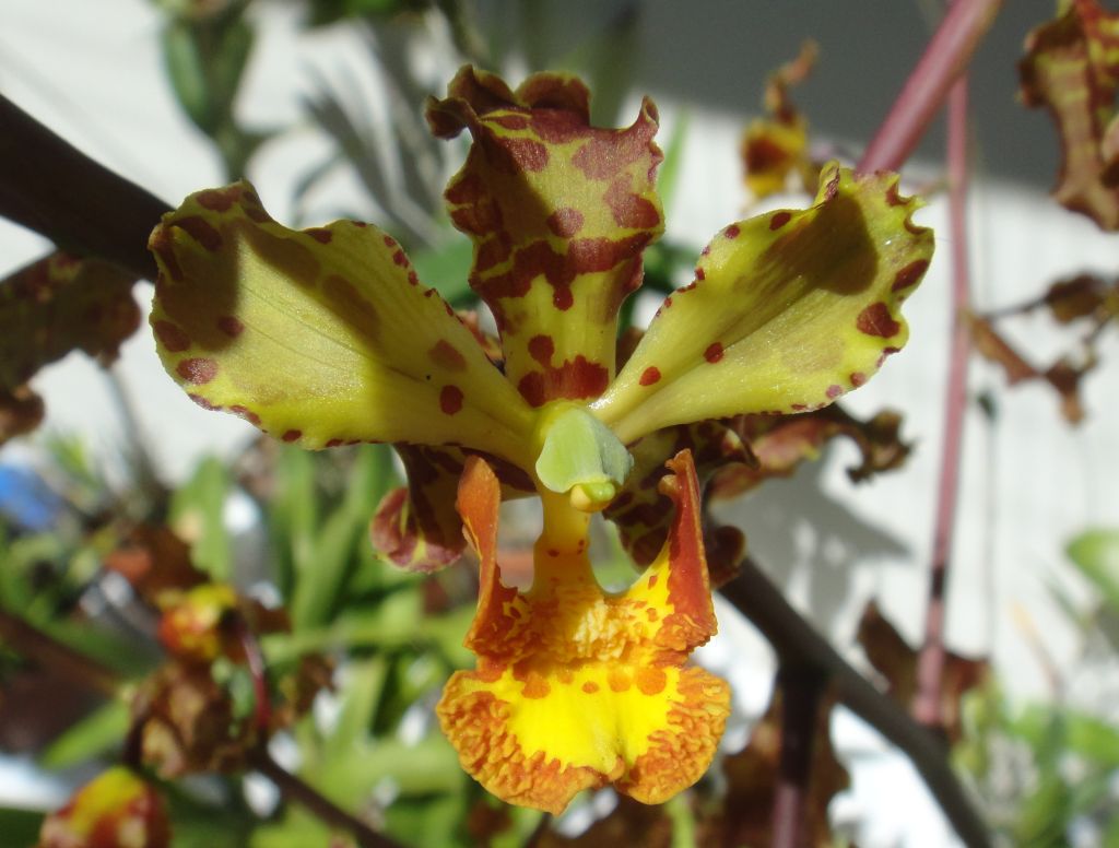 Found in Florida, Cuba, Dominican Republic, Haiti, Jamaica, Cayman Islands, Puerto Rico, Trinidad & Tobago, Mexico, Guatemala, Belize, El Salvador, Honduras, Nicaragua, Venezuela, Colombia, Peru, Bolivia, Brazil, Paraguay and Argentina in arid areas at elevations of 20 to 1400 meters as a large sized, hot to cool growing epiphyte, lithophyte or terrestrial with clustered, erect, fusiform elongate, many noded pseudobulbs enveloped by grey white sheaths when young and carrying linear to elliptic-lanceolate, acute to acuminate, distichous, spreading or recurved, elongate at the subpetiolate base, plicate leaves that blooms in late spring on a basal, branching, heavily bracteate, up to 5' [to 150 cm] long, many flowered inflorescence arising with a new growth, commonly called the cigar orchid because of it's pseudobulb's shape, it has deciduous leaves that it loses in the fall ,and thus should have less water in the winter, than when it is growing. The inflorecense appears just after the new lead for a pseudobulb begins to appear.