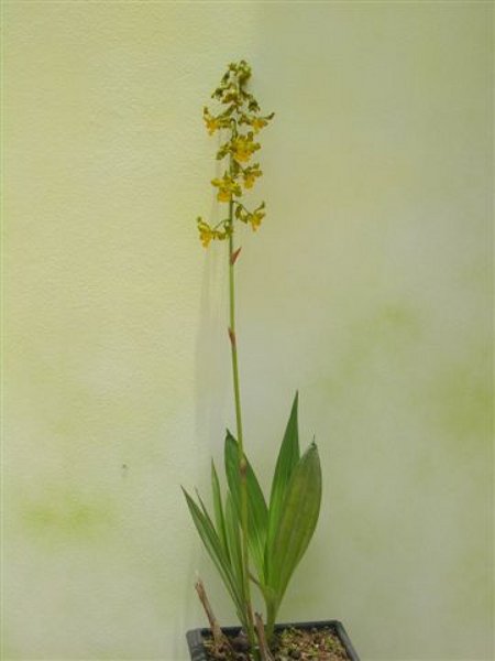 Found in Rondonia Brazil as a small to medium sized terrestrial that blooms on an erect, 24" [60 cm] long, densely many flowered inflorescence arising with the new growths and holding the flowers in the apical third.