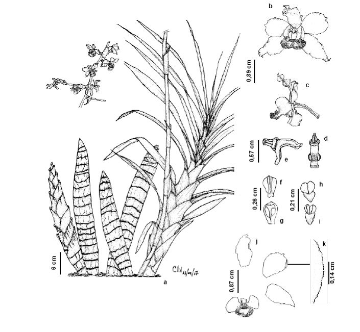 Found in Trinidad and Venezuela at elevations below 200 meters as a medium sized, hot growing terrestrial with fusiform, subcylindrical pseudobulbs carrying several, linear, acute, plicate, prominently nerved, alternate leaves that blooms in the later spring on a basal, erect, peduncle enveloped by cyllinrical, lanceoalte, acute sheaths, paniculate, manyflowered inflorescence carrying resupinate flowers.
