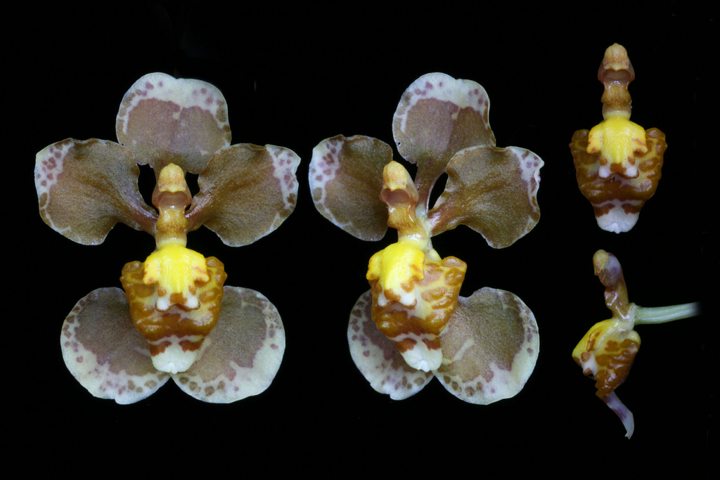 References W3 Tropicos, Kew Monocot list , IPNI ; Das Pflanzenreich Odontoglossum/Oncidium Kranzlin 1922; Rudolf Schlechter Die Orchideen Band 1C lieferung 44-45 pg 2763 - 2898 Brieger 2001 as Trigonidium kopfianum; Native Ecuadorian Orchids Vol 4 Dodson 2003 as Oncidium rusticum photo fide; Orchid Species Culture: Oncidium/Odontoglossum alliance Bakers 2006 as C kopfianum; Orchid Species Culture: Oncidium/Odontoglossum alliance Bakers 2006; Flora of Ecuador No 87 225[3] Orchidaceae Dodson & Luer 2010 drawing fide; AOS Bulletin Vol 87 #10 2018 photo fide;