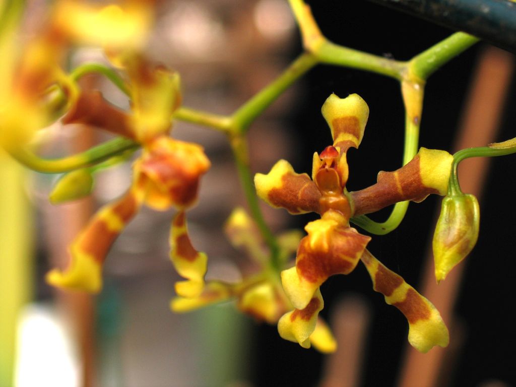 Found in Cusco department of Peru at elevations of 2000 to 2700 meters as a medium sized, cold growing epiphyte with caespitose, ovoid pseudobulbs enveloped basally by 6 to 8 distichous sheaths and carrying 2 apical, erect, elliptic to obovate, narrowly acute to aacuminate apically, conduplicate below into the subpetiolate base leaves that blooms in the late spring on 1 to 2, axillary, erecct to arching, panicle to 52" [130 cm] long, many, widely spaced, alnost striaght to flexuous, 3 to 6 flowered side branches, many flowered inflorescence with adpressed, scale like, ventrally pubescent floral bracts and carrying stellate flowers with deflexed segments.