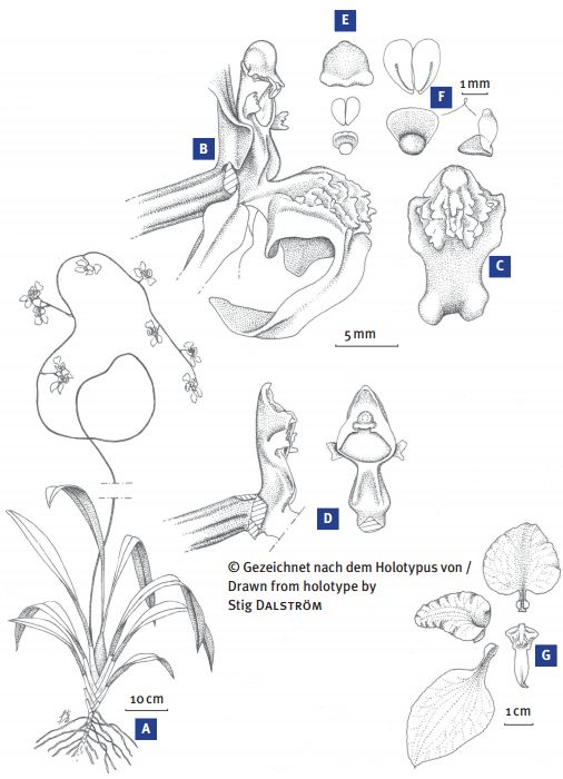 Found in Venezuela without locality as a cold growing epiphyte with a creeping, bracteate rhizome giving rise to distant, elongate ovoi pseudobulbs envelope dbasally by 9 to 10 distichous, foliaceous sheaths and carrying 2, apical, conduplicate, elongate-elliptic, narrowly acute to acuminate, subpetiolate base leaves that blooms in the spring in cultivation on an axillary, from the uppermost sheath, wiry, 12'2" [to 365 cm] long overall, paniculate, distantly few branched, each few flowered, several flowered inflorescence.