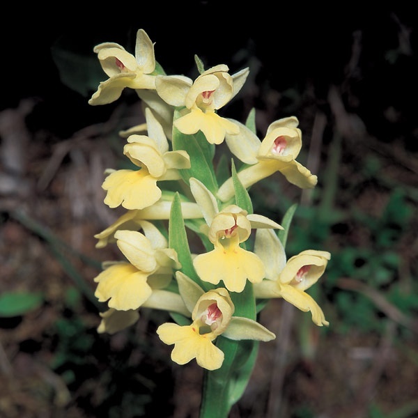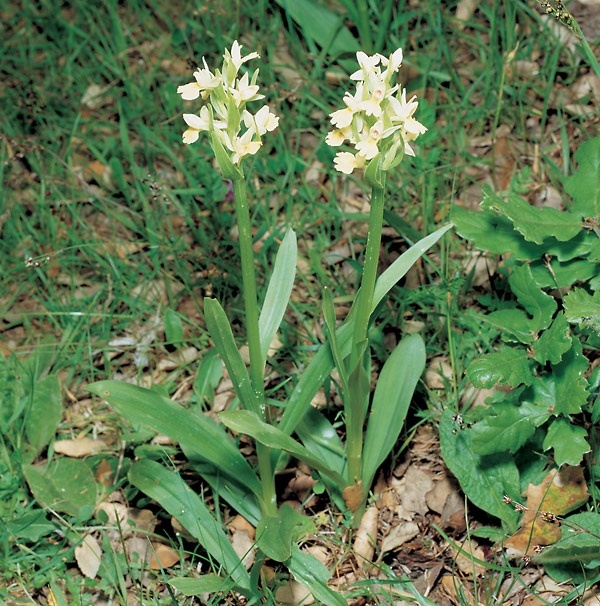 This small to medium sized, cool to cold growing terrestrial is found in Portugal, Spain, France, Corsica, Sardinia, Italy and Morocco in full sun to mid-shade of open woodlands, meadows and short grasslands at elevations up to 2000 meters with a slender stem carrying 5 to 9, near erect, linear-lanceolate leaves and it blooms on an erect, terminal, laxly many flowered, racemose inflorescence that has leaflike bracts and blooms in the spring with fragrant [elder] flowers.