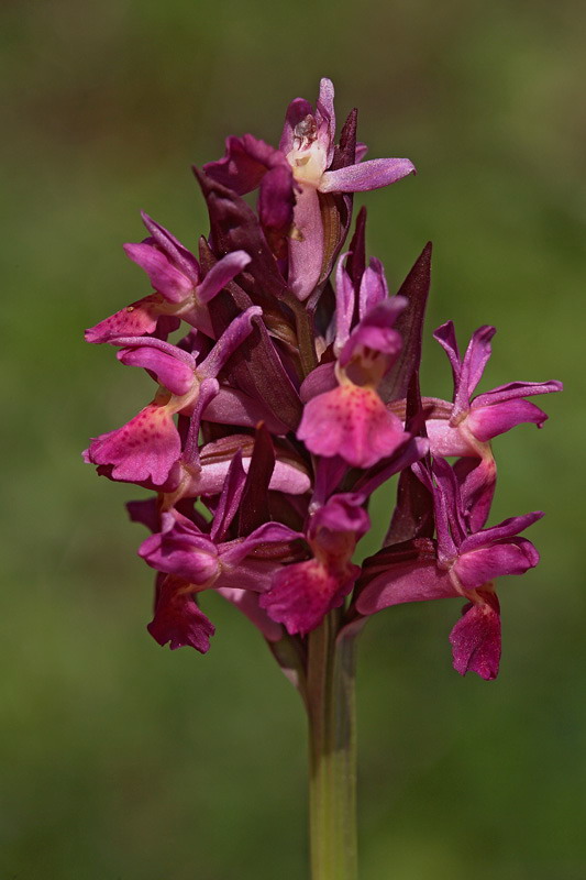 Found in Norway, Sweden, Finland, Spain, France, Corsica, Sardinia, Denmark, Germany, Czechoslovakia, Austria, Hungary, Switzerland, Italy, Yugoslavia, Albania, Bulgaria, Romania, Poland , Belarus, Ukraine and the Baltics as a miniature to small sized, cold growing terrestrial in mostly full sun, on calcareous to slighly acidic soils in dry to damp substrates in short, poor grasslands, meadows, montane pastures, open woodlands at elevations up to 2600 meters with a robust and squat plant and has a thick, hollow stem carrying 4 to7, unspotted, pale green, well spaced on the stem, lanceolate, uppermost, 1 to 2, smaller, linear-lanceolate, bract-like leaves that blooms on a dense, initially ovoid and then nearly cylindrical, 4 to 12" [10 to 30 cm] long, green inflorescence with a slight fragrance reminiscent of elder