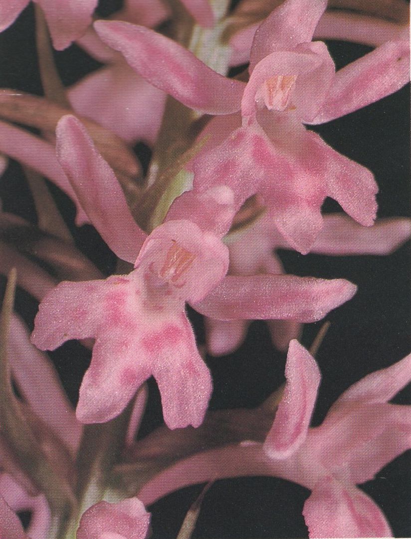 Found in Austria and France as a cold growing terrestrial that is a natural hybrid between Dactylorhiza macualta and Gymnadenia odoratissima that blooms in the summer