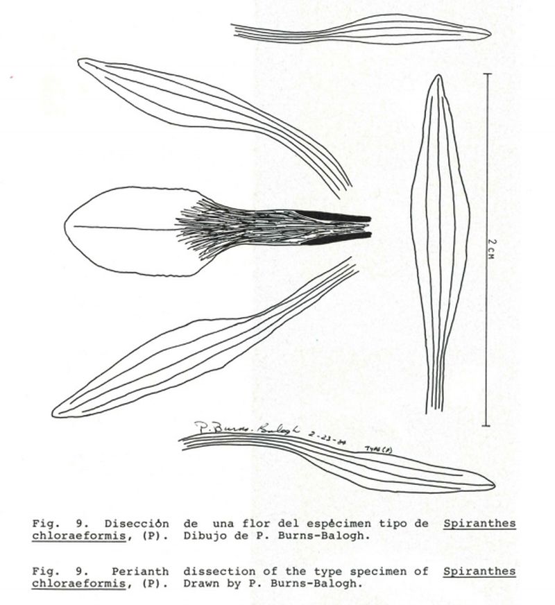 References W3 Tropicos, Kew Monocot list , IPNI ; Orquídea (Mexico City). 8(1) 1981 as Scheideella chloraeformis; ORQUIDEA (Méx. ) 10 (1) ABRIL 1986 as Spiranthes chloreformis drawing fide; Rudolf Schlechter Die Orchideen Band 1C lieferung 41 pg 2565 - 2625 Brieger 2001 as Burnsbaloughia diaphana drawing fide; Genera Orchidacearaum Vol 3 Orchiodeae Part 2 Vanilloideae Pridgeon, Cribb. Chase & Rasmusen 2003; Orchids of Mexico Hagsater, Soto, Salazar, Jimenez Lopez and Dressler 2005;