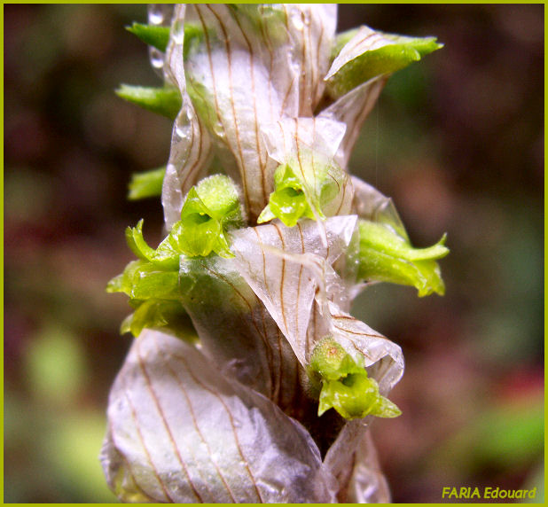 Found in central and southwestern Mexico on rocky hills and grassy openings in pine/oak forests at elevations of 1900 to 2100 meters as an erect, leafless at flowering, medium to large sized, warm to cool growing terrestrial orchid with an erect stem and then a 10 to 12, imbricate, pale brown to white, very thin, almost transluscent, papery, sheathing bracts and then an inflorescence that is to 6" [15 cm] long carries 20 to 30 flowers held in several ranks and has glabrous, lanceolate, attenuate or narrowly acuminate floral bracts through which the narrow fragrant flowers protrude in the late winter and early spring.
