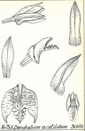 Dendrobium acutilobum Schltr. 1912 SECTION Grastidium [Bl] J J Sm 1905 Drawing by © Schlechter and The Swiss Orchid Foundation at the Jany Renz Herbaria Website