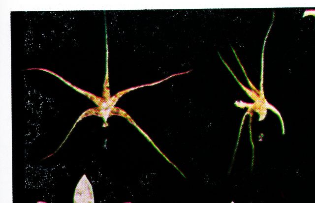 Found in the Philippines as a large sized, cool growing epiphyte with numerous, simple, pendulous, smooth, terete stems carrying linear, narrowing to the tips, unequall apically, papery leaves that blooms in the spring on axilalry, peduncles [1.3 to 1.8 cm] long, rachis very short, 2 flowered inflorescence with oblong bracts and carrying ephemeral, fugaceous flowers.