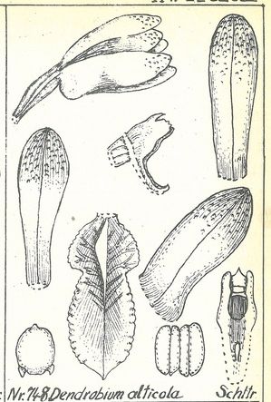 Dendrobium alticola Schltr. 1912 SECTION Grastidium [Bl] J J Sm 1905 Drawing by © Schlechter and The Swiss Orchid Foundation at the Jany Renz Herbaria Website