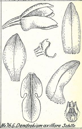 Dendrobium axillare Schltr. 1912 SECTION Grastidium [Bl] J J Sm 1905 Type Drawing by © Schlechter and The Swiss Orchid Foundation at the Jany Renz Herbaria Website