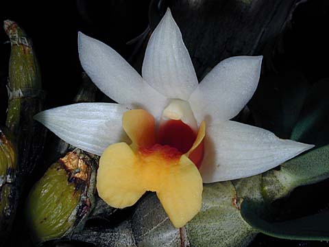 This species needs a drier winter rest from watering and fertilizer starting in November and ending with blooming in March. This species does best mounted as it needs to fully dry out between waterings.