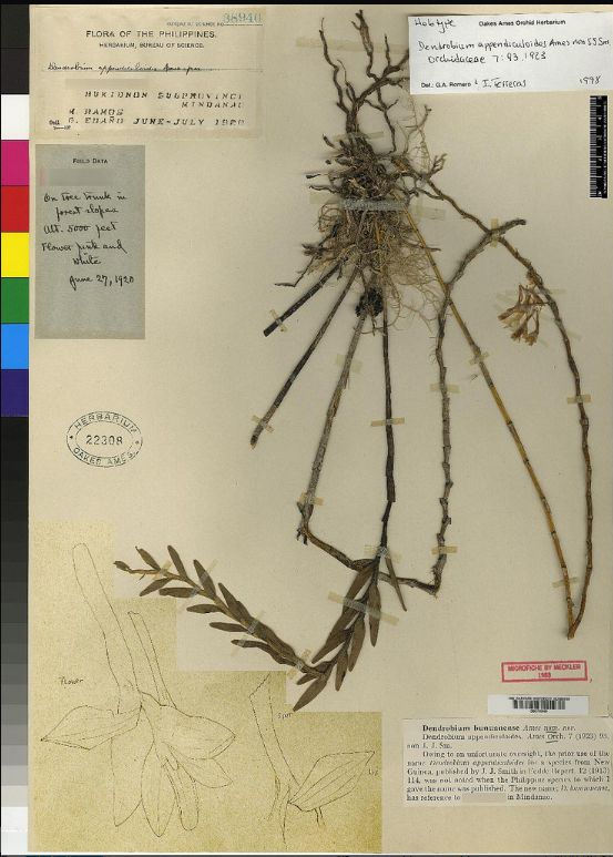 References W3 Tropicos, Kew Monocot list , IPNI ; Orchidiana Philippiana Vol 1 Valmayor 1984 as D appendiculoides; Orchid Species Culture Dendrobium Bakers 1996;