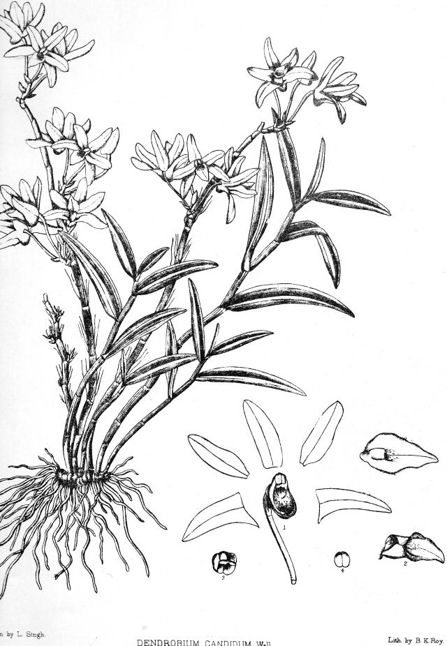 References W3 Tropicos, Kew Monocot list , IPNI ; A Century of Indian Orchids Vol 5 Hooker 1895 drawing fide; The Orchids of Sikkim-Himalaya Part 1 King & Pantling 1898 as D spathaceum drawing fide; The Orchids of North-Western Himalaya Vol IX Part II Duthie 1906; Orchidaceae Monandre-Dendrobiinae Fr. Kraenzlin 1910; Orchidaceae Monandre-Dendrobiinae Fr. Kraenzlin 1910 as D spathaceum; Die Orchideen Schlechter 1915; Die Orchideen 2 Auflage Schlechter 1927; AOS Bulletin Vol 27 No 1 1958 as D spathaceum drawing ok; AOS Bulletin Vol 27 No 10 1958 drawing; Encyclopedia of Cultivated Orchids Hawkes 1965; Beautiful Indian Orchids and How to grow them Ghose 1968; Indian Orchids, A guide to Identification and Culture Vol II Pradhan 1979 drawing good; Orchids of Northwest Himalaya Deva & Naithani 1986 drawing fide; Orchids of Kumaun Himalayas Pangtey, Samant and Rawat 1991; Orchid Species Culture; Dendrobium Bakers 1996; Orchid Species Culture, Dendrobium Bakers 1996 as D spathaceum; The Orchids of Bhutan Cribb & Pearce 2002 photo fide; Beautiful Orchids of Nepal Rajbhandari & Bhattarai 2001 photo fide; The Dendrobiums H. P. Wood 2006 photo fide; Orchids of India A Glimpse Misra 2007; Orchids of India A Glimpse Misra 2007 as D spathaceum; The Wild Orchids in Yunnan Xu Xiang Ye & Liu 2010 photos hmmm not white lip seems wrong