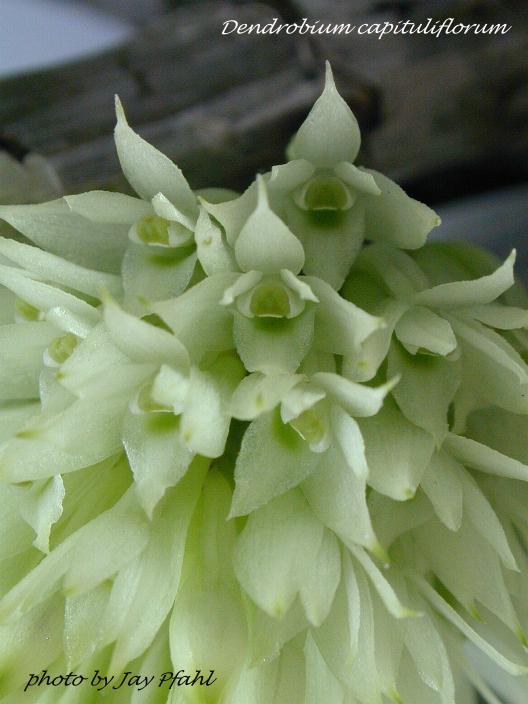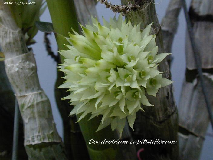 References W3 Tropicos, Kew Monocot list , IPNI ; Orchidaceae Monandre-Dendrobiinae Fr. Kraenzlin 1910; The Orchidaceae of German New Guinea Schlechter 1912/85; The Orchids of Papua New Guinea An Introduction Millar 1978 photo fide; Die Orchideen lieferung 11/12 633 - 752 Brieger 1981 as Pedilonum capituliferum sic photo fide; The Orchids of the Solomon Islands and Bougainville Lewis & Cribb 1991 photo fide; AOS Bulletin Vol 62 # 1 1993 photo fide; Lowland Orchids of of Papua New Guinea Peter O'Byrne 1994 drawing/photo fide; Orchid Species Culture; Dendrobium Bakers 1996; Orchids of Papua New Guinea Millar 1999 photo fide; Dendrobium and their Relatives Lavarack, Harris and Stocker 2000 photo fide; Flora Malesiana Orchids of New Guinea Vol II Shuiteman and de Vogel 2002; Botanica's Orchids 2002 photo fide; Flora's Orchids Nash & La Croix 2005 photo ok; Orchid Digest Vol 74 #4 2010 photo fide; A Guide to the Dendrobium of New Guinea Andre Schuiteman 2013 photo fide; AOS Bulletin Vol 85 #2 2016 photo fide; AOS Bulletin Vol 85 #1 2016 photo fide; AOS Bulletin Vol 85 #6 2016 photo fide; AOS Bulletin Vol 88 # 6 2019 photo fide;