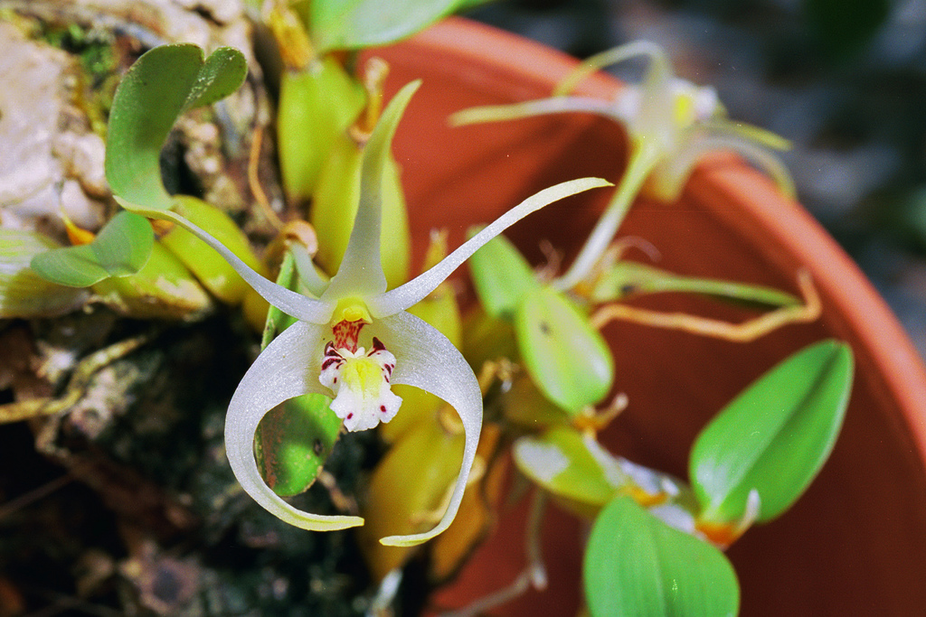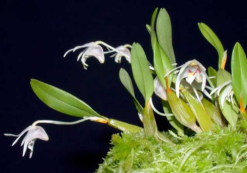 Found in Papua and New Guinea in cloud forests at elevations of 1000 to 1300 meters as a miniature sized, cool growing epiphyte with suberect to ascending, 5 angled, cylindrical pseudobulbs carying a single, apical, erect to suberect, ligulate to oblong-ligulate, obtuse leaf that blooms in the spring and fall on a successive single flowered inflorescence.